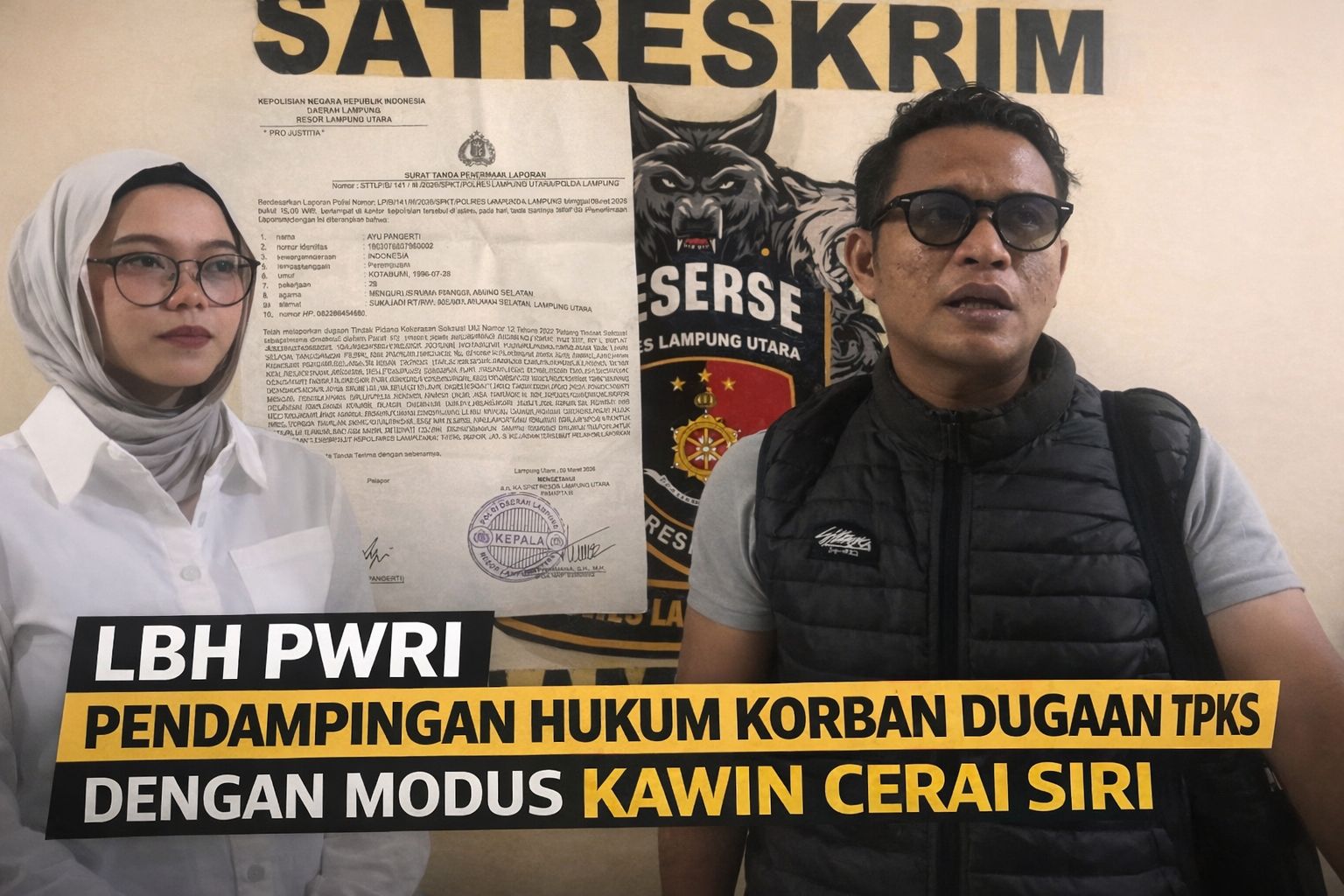 LiputanTerkini.id, Lampung Utara—Lembaga Bantuan Hukum Pembela Wartawan Republik Indonesia (LBH PWRI) Lampung Utara memberikan pendampingan hukum kepada seorang perempuan berinisial AP (29), yang diduga menjadi korban Tindak Pidana Kekerasan Seksual (TPKS) dengan modus kawin cerai siri oleh seorang pria berinisial HA di Kabupaten Lampung Utara.