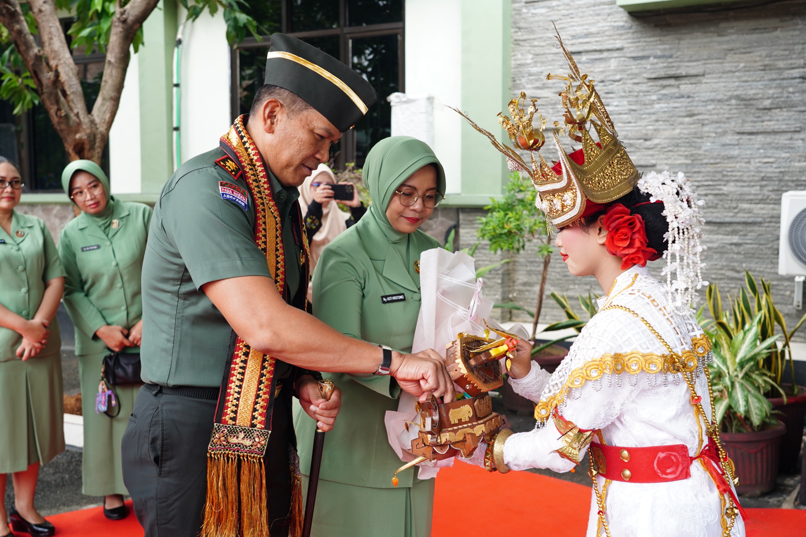 Kedatangan Pangdam dan rombongan di Makodim 0410/KBL, Jl. Imam Bonjol, Bandar Lampung, disambut hangat oleh Danrem 043/Gatam Brigjen TNI Haryantana, S.H., Ketua Persit KCK Koorcab Rem 043 PD XXI/RI, Kasrem 043/Gatam, Kasdim 0410/KBL, serta Forkopimda Kota Bandar Lampung, di antaranya Ketua DPRD, Sekda, Kajari, dan Kapolsek TKB, bersama para prajurit, PNS, serta anggota Persit.